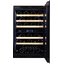 Современные винные шкафы всех типов, в том числе компрессорные, темоэлектрические и абсорбционные, оснащаются электронной системой управления — кнопочной или сенсорной. Панель управления, с помощью которой производится регулировка параметров работы, может размещаться внутри винного шкафа за дверцей или снаружи в верхней части корпуса. Второй вариант более удобен, поскольку для изменения параметров не нужно открывать дверцу. Кроме того, такое расположение панели управления позволяет поддерживать более стабильную температуру в камере. Однако для больших винных шкафов в классическом стиле из ценных пород дерева предпочтительнее скрытая панель управления, которая не портит их внешний вид.
