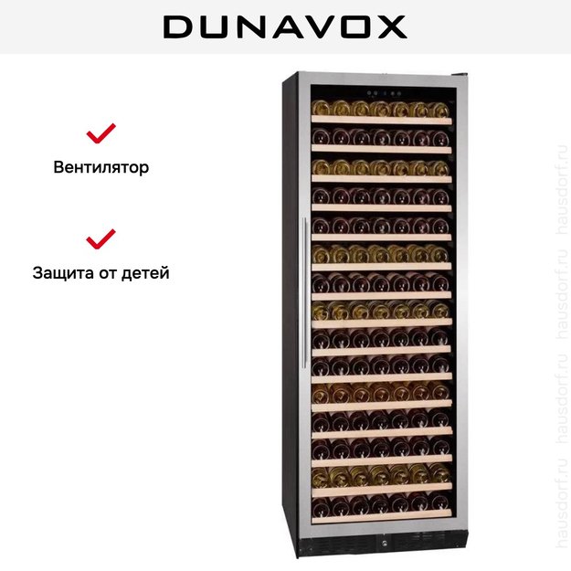 Винный шкаф Dunavox DX-194.490SSK отличается большой вместимостью и элегантным внешним видом. Прибор вмещает до 194 бутылок вина стандартного объема, что позволяет использовать устройство не только для домашнего использования. За счет отдельностоящей установки прибор легко перемещается на любую новую локацию. Внутри предусмотрено светодиодное освещение — экономичный и безопасный вариант. Оно хорошо подсвечивает бутылки, что не только обеспечивает хороший обзор, но и смотрится эстетично в любом интерьерном решении. Винный шкаф Дунавокс DX-194.490SSK оснащен электронным сенсорным управлением, которое отличается простотой использования. Бутылки укладываются горизонтально — для этого предусмотрены вместительные и надежные деревянные полочки. В комплект к модели входит подробная инструкция.