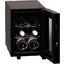 Современные винные шкафы всех типов, в том числе компрессорные, темоэлектрические и абсорбционные, оснащаются электронной системой управления — кнопочной или сенсорной. Панель управления, с помощью которой производится регулировка параметров работы, может размещаться внутри винного шкафа за дверцей или снаружи в верхней части корпуса. Второй вариант более удобен, поскольку для изменения параметров не нужно открывать дверцу. Кроме того, такое расположение панели управления позволяет поддерживать более стабильную температуру в камере. Однако для больших винных шкафов в классическом стиле из ценных пород дерева предпочтительнее скрытая панель управления, которая не портит их внешний вид.