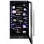 Дверца у большинства винных шкафов изготавливается из многослойного тонированного стекла. Такой материал, с одной стороны, позволяет оценивать коллекцию вин визуально, не открывая дверцу, в условиях стабильной температуры и влажности. С другой стороны, затемненное стекло с УФ-фильтром в виде напыления или специальной пленки надежно изолирует винные бутылки негативного воздействия ультрафиолетового излучения. Несколько слоев стекла обеспечивают при этом дополнительную защиту. Очень часто стекло в дверце заключается в рамку из дерева или металла. Натуральный или окрашенный металл или дерево не только способствуют прочности конструкции, но и превращают винный холодильник, особенно отдельно стоящий, в эффектный элемент обстановки.