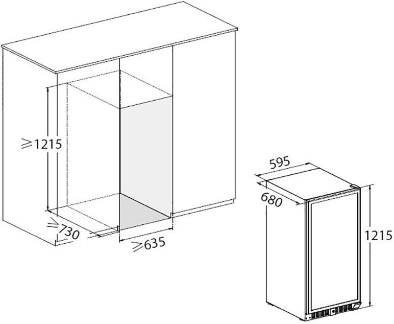 Некоторые отдельно стоящие винные шкафы, а также модели, встраиваемые в мебельную колонну, шкаф или другое закрытое пространство, оснащаются системой забора воздуха и вентиляционной решеткой, расположенными спереди в нижней части корпуса. Зазоры между корпусом шкафа и стенками мебели необходимы и в этом случае.