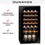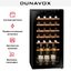 Винный шкаф Dunavox DXFH-28.88 — компактная модель, которая при своих небольших размерах обеспечивает правильное хранение вина. Пользователь самостоятельно вносит необходимые настройки через сенсорную панель. Преимуществом данного изделия является то, что бутылки можно располагать не только горизонтально (на деревянные полочки), но и вертикально (на специальный балкон). Это удобно, так как можно убирать открытые бутылки или выставлять коллекционные напитки для хорошего обзора. Деревянные полочки смотрятся стильно. Внутренняя подсветка хорошо подсвечивает камеру, что придает устройству элегантный образ. Винный шкаф Дунавокс DXFH-28.88 работает тихо, тем самым не беспокоит пользователей посторонними звуками. Стеклопакет с тонировкой, что обеспечивает защиту от ультрафиолетового излучения.