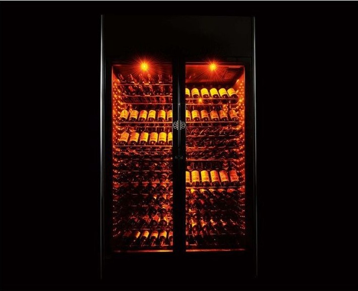 Внутреннее освещение в винных шкафах обеспечивает оптимальный обзор вин, находящихся на полках, и гарантирует при этом их полную сохранность. Известно, что любое ультрафиолетовое излучение негативно отражается на качестве вина: именно поэтому стекло в дверце снабжается УФ-фильтрами и защитной пленкой. Подсветка должна удовлетворять этим же требованиям, так что в большинстве устройств в камерах устанавливаются светодиодные светильники, которые, кроме того, потребляют очень малое количество электроэнергии и отличаются долговечностью. Во время работы LED-лампы не нагреваются, так что температура в камере также остается неизменной. Многие шкафы оснащаются функциями плавного включения и выключения освещения и изменения его яркости, а также функцией автоматического отключения через 10-15 секунд после закрытия дверцы.