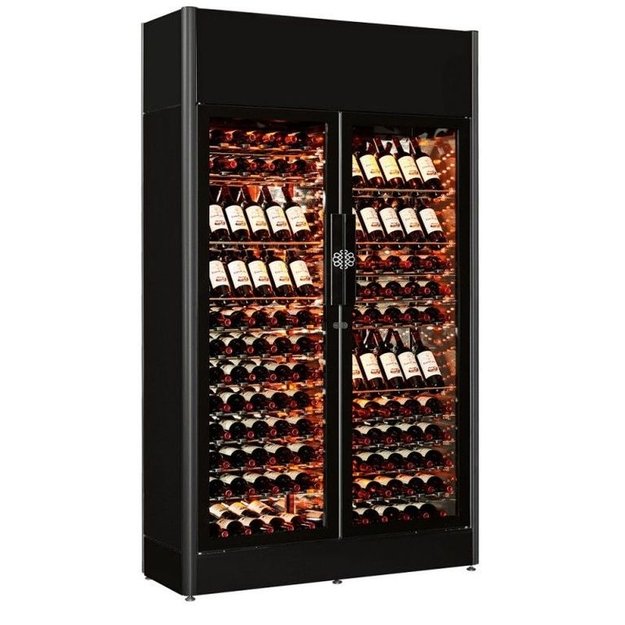Ширина винного шкафа, как и другие их габариты, обязательно учитывается при выборе модели для домашнего или профессионального использования. Встраиваемые и отдельно стоящие модели выпускаются в самом широком ассортименте, так что разброс значений максимально велик. Неизменным спросом пользуются винные шкафы стандартной ширины — от 40 до 80 см, в современном и классическом стиле. Для встраиваемых шкафов наиболее удобной является ширина 60 см, позволяющая устанавливать их в кухонную тумбу или колонну. Вместимость их может быть самой различной и зависит в большей степени от высоты прибора. Маленькие винные шкафы с размещением на столешнице или даже с креплением к стене, рассчитанные на хранение от одной до десяти бутылок, могут иметь минимальную ширину от 13 см. На полках у них обычно помещается не более 5 бутылок, и используются они для охлаждения вина перед подачей. Большие винные шкафы с несколькими камерами и температурными зонами для длительного хранения и созревания разных сортов вина могут иметь ширину до 180 см, а максимальное значение этого параметра может составить 300 см. Как правило, это отдельно стоящие модели в деревянном корпусе с камерами side-by-side.