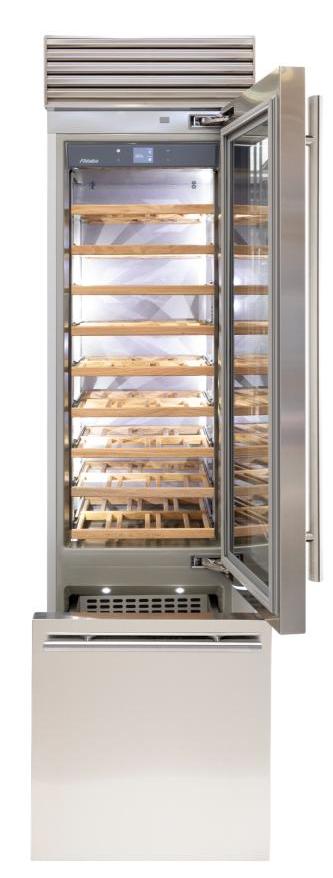 Винный холодильник Fhiaba XS600TWT6 имеет две температурные зоны, в которых одновременно можно хранить разные сорта алкоголя и выставлять разные сочетания настроек. Он встраивается в нишу, что удобно, если у вас ограничен метраж помещения. Количество бутылок, которое можно разместить с учетом полной комплектации и из расчета объема бутылки 0,75 л, — 54 шт.