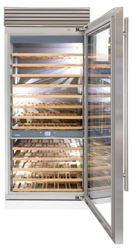 Винный холодильник Fhiaba XS900FW6 имеет две температурные зоны, в которых одновременно можно хранить разные сорта алкоголя и выставлять разные сочетания настроек. Он встраивается в нишу, что удобно, если у вас ограничен метраж помещения. Количество бутылок, которое можно разместить с учетом полной комплектации и из расчета объема бутылки 0,75 л, — 156 шт.