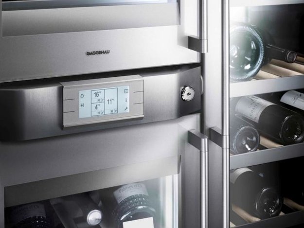 Современные винные шкафы всех типов, в том числе компрессорные, темоэлектрические и абсорбционные, оснащаются электронной системой управления — кнопочной или сенсорной. Панель управления, с помощью которой производится регулировка параметров работы, может размещаться внутри винного шкафа за дверцей или снаружи в верхней части корпуса. Второй вариант более удобен, поскольку для изменения параметров не нужно открывать дверцу. Кроме того, такое расположение панели управления позволяет поддерживать более стабильную температуру в камере. Однако для больших винных шкафов в классическом стиле из ценных пород дерева предпочтительнее скрытая панель управления, которая не портит их внешний вид.