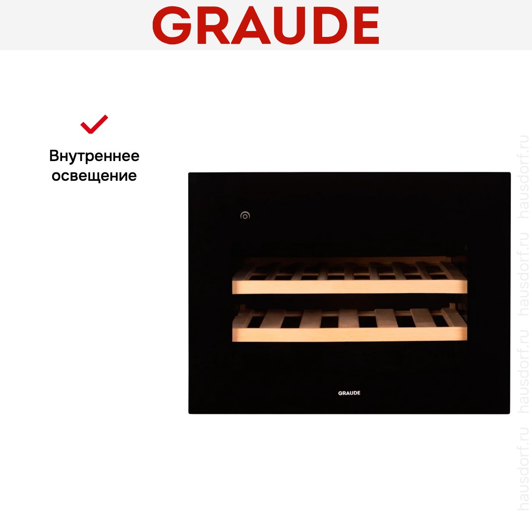 Винный холодильник Graude FWK 45.2 имеет две температурные зоны, в которых одновременно можно хранить разные сорта алкоголя и выставлять разные сочетания настроек. Он встраивается в нишу, что удобно, если у вас ограничен метраж помещения. Благодаря компактным размерам данная модель — отличный выбор для офиса, гостиничного номера. Количество бутылок, которое можно разместить с учетом полной комплектации и из расчета объема бутылки 0,75 л, — 28 шт.