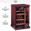 Электронное управление помогает быстро разобраться в том, как функционирует эта модель, и легко настроить все необходимые параметры. На дисплее отображаются данные, которые собирают датчики в камере. Цифровой термометр позволяет контролировать, соблюдаются ли оптимальные условия. Лампочки, расположенные внутри, хорошо подсвечивают бутылки. Всего полок, на которых можно разместить коллекцию, в шкафу 4 шт.