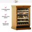 Электронное управление помогает быстро разобраться в том, как функционирует эта модель, и легко настроить все необходимые параметры. На дисплее отображаются данные, которые собирают датчики в камере. Цифровой термометр позволяет контролировать, соблюдаются ли оптимальные условия. Лампочки, расположенные внутри, хорошо подсвечивают бутылки. Всего полок, на которых можно разместить коллекцию, в шкафу 5 шт.