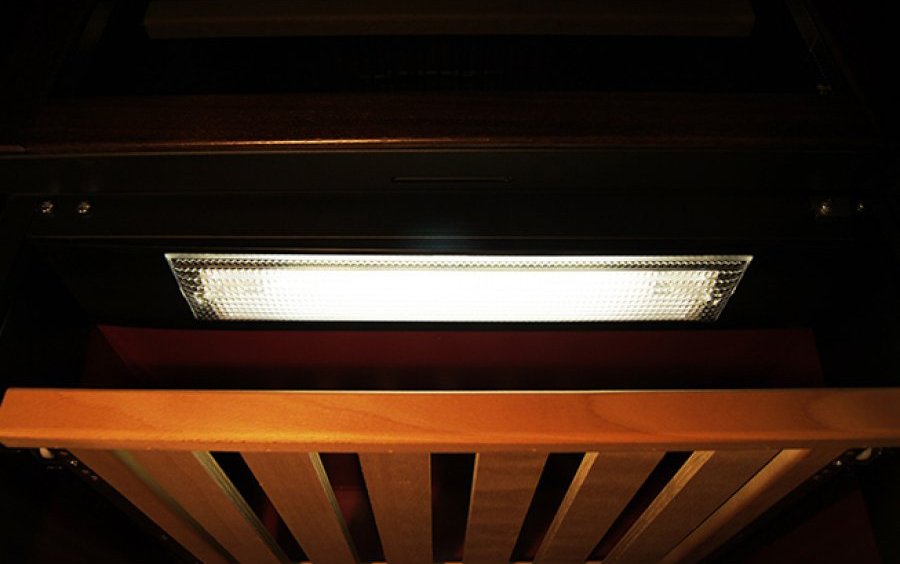 Внутреннее освещение в винных шкафах обеспечивает оптимальный обзор вин, находящихся на полках, и гарантирует при этом их полную сохранность. Известно, что любое ультрафиолетовое излучение негативно отражается на качестве вина: именно поэтому стекло в дверце снабжается УФ-фильтрами и защитной пленкой. Подсветка должна удовлетворять этим же требованиям, так что в большинстве устройств в камерах устанавливаются светодиодные светильники, которые, кроме того, потребляют очень малое количество электроэнергии и отличаются долговечностью. Во время работы LED-лампы не нагреваются, так что температура в камере также остается неизменной. Многие шкафы оснащаются функциями плавного включения и выключения освещения и изменения его яркости, а также функцией автоматического отключения через 10-15 секунд после закрытия дверцы.