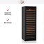 Ширина винного шкафа, как и другие их габариты, обязательно учитывается при выборе модели для домашнего или профессионального использования. Встраиваемые и отдельно стоящие модели выпускаются в самом широком ассортименте, так что разброс значений максимально велик. Неизменным спросом пользуются винные шкафы стандартной ширины — от 40 до 80 см, в современном и классическом стиле. Для встраиваемых шкафов наиболее удобной является ширина 60 см, позволяющая устанавливать их в кухонную тумбу или колонну. Вместимость их может быть самой различной и зависит в большей степени от высоты прибора. Маленькие винные шкафы с размещением на столешнице или даже с креплением к стене, рассчитанные на хранение от одной до десяти бутылок, могут иметь минимальную ширину от 13 см. На полках у них обычно помещается не более 5 бутылок, и используются они для охлаждения вина перед подачей. Большие винные шкафы с несколькими камерами и температурными зонами для длительного хранения и созревания разных сортов вина могут иметь ширину до 180 см, а максимальное значение этого параметра может составить 300 см. Как правило, это отдельно стоящие модели в деревянном корпусе с камерами side-by-side.