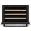 Стеклянная дверь — дополнительный изящный штрих к общему дизайну модели. Специальное покрытие защищает вино от влияния ультрафиолетовых лучей, которые проникают, если шкаф находится в солнечной комнате. Цвет корпуса — черный.