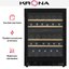 Винный холодильник KRONA BADEN 82/46 BL имеет две температурные зоны, в которых одновременно можно хранить разные сорта алкоголя и выставлять разные сочетания настроек. Он встраивается в нишу, что удобно, если у вас ограничен метраж помещения. Благодаря компактным размерам данная модель — отличный выбор для офиса, гостиничного номера. Количество бутылок, которое можно разместить с учетом полной комплектации и из расчета объема бутылки 0,75 л, — 46 шт.