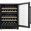 Стеклянная дверь — дополнительный изящный штрих к общему дизайну модели. Специальное покрытие защищает вино от влияния ультрафиолетовых лучей, которые проникают, если шкаф находится в солнечной комнате. Цвет корпуса — черный. Дверь можно перевесить на другую сторону, поэтому вариантов размещения его в доме становится больше.