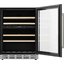 Стеклянная дверь — дополнительный изящный штрих к общему дизайну модели. Специальное покрытие защищает вино от влияния ультрафиолетовых лучей, которые проникают, если шкаф находится в солнечной комнате. Цвет корпуса — нержавеющая сталь. Дверь можно перевесить на другую сторону, поэтому вариантов размещения его в доме становится больше.