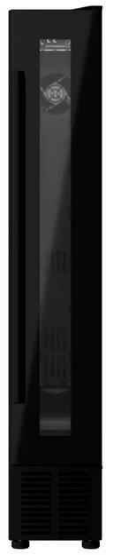 Электронное управление помогает быстро разобраться в том, как функционирует эта модель, и легко настроить все необходимые параметры. На дисплее отображаются данные, которые собирают датчики в камере. Лампочки, расположенные внутри, хорошо подсвечивают бутылки. Всего полок, на которых можно разместить коллекцию, в шкафу 7 шт.