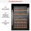 Стеклянная дверь — дополнительный изящный штрих к общему дизайну модели. Специальное покрытие защищает вино от влияния ультрафиолетовых лучей, которые проникают, если шкаф находится в солнечной комнате. Цвет корпуса — черный. Дверь можно перевесить на другую сторону, поэтому вариантов размещения его в доме становится больше.