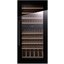 Стеклянная дверь — дополнительный изящный штрих к общему дизайну модели. Специальное покрытие защищает вино от влияния ультрафиолетовых лучей, которые проникают, если шкаф находится в солнечной комнате. Цвет корпуса — черный. Дверь можно перевесить на другую сторону, поэтому вариантов размещения его в доме становится больше.