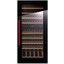 Стеклянная дверь — дополнительный изящный штрих к общему дизайну модели. Специальное покрытие защищает вино от влияния ультрафиолетовых лучей, которые проникают, если шкаф находится в солнечной комнате. Цвет корпуса — черный. Дверь можно перевесить на другую сторону, поэтому вариантов размещения его в доме становится больше.