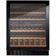 Небольшой винный шкаф рассчитан на 44 бутылки — подходит для держателей небольших домашних коллекций, минибаров в отелях или офисах. Его легко интегрировать практически в любой интерьер за счет компактности, встраивания под столешницу и перенавешивания двери. В данной модели корпус рамка двери выполнена в черном стекла, а ручка имеет матовый оттенок того же черного цвета.