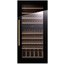 Стеклянная дверь — дополнительный изящный штрих к общему дизайну модели. Специальное покрытие защищает вино от влияния ультрафиолетовых лучей, которые проникают, если шкаф находится в солнечной комнате. Цвет корпуса — черный. Дверь можно перевесить на другую сторону, поэтому вариантов размещения его в доме становится больше.