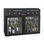 Ширина винного шкафа, как и другие их габариты, обязательно учитывается при выборе модели для домашнего или профессионального использования. Встраиваемые и отдельно стоящие модели выпускаются в самом широком ассортименте, так что разброс значений максимально велик. Неизменным спросом пользуются винные шкафы стандартной ширины — от 40 до 80 см, в современном и классическом стиле. Для встраиваемых шкафов наиболее удобной является ширина 60 см, позволяющая устанавливать их в кухонную тумбу или колонну. Вместимость их может быть самой различной и зависит в большей степени от высоты прибора. Маленькие винные шкафы с размещением на столешнице или даже с креплением к стене, рассчитанные на хранение от одной до десяти бутылок, могут иметь минимальную ширину от 13 см. На полках у них обычно помещается не более 5 бутылок, и используются они для охлаждения вина перед подачей. Большие винные шкафы с несколькими камерами и температурными зонами для длительного хранения и созревания разных сортов вина могут иметь ширину до 180 см, а максимальное значение этого параметра может составить 300 см. Как правило, это отдельно стоящие модели в деревянном корпусе с камерами side-by-side.