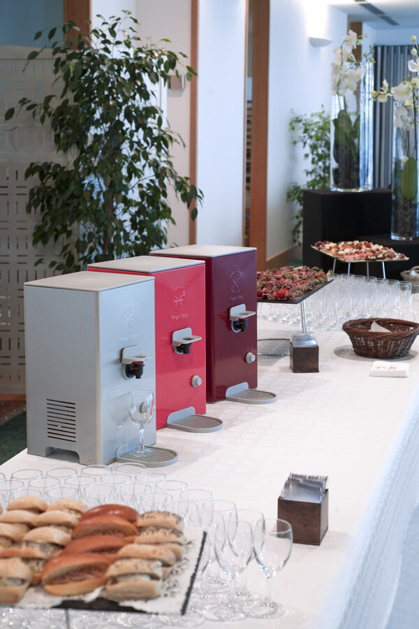 Прибор вмещает в себя объем четырех бутылок по 0.75 л типа бордо или одну упаковку Bag-in-box на 3-5 л. На лицевой стороне размещена подставка под бокал, краник и поворотный переключатель. Диспенсер оснащен термоэлектрической системой охлаждения. Вы можете выставлять необходимую температуру в диапазоне от +8 до +16 градусов.