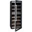 Дверца у большинства винных шкафов изготавливается из многослойного тонированного стекла. Такой материал, с одной стороны, позволяет оценивать коллекцию вин визуально, не открывая дверцу, в условиях стабильной температуры и влажности. С другой стороны, затемненное стекло с УФ-фильтром в виде напыления или специальной пленки надежно изолирует винные бутылки негативного воздействия ультрафиолетового излучения. Несколько слоев стекла обеспечивают при этом дополнительную защиту. Очень часто стекло в дверце заключается в рамку из дерева или металла. Натуральный или окрашенный металл или дерево не только способствуют прочности конструкции, но и превращают винный холодильник, особенно отдельно стоящий, в эффектный элемент обстановки.