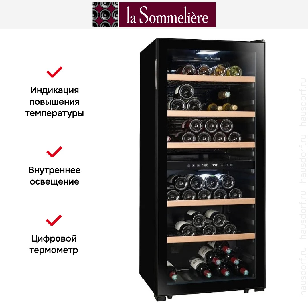 Винный шкаф La Sommeliere LS102DZBLACK — элегантное и технологичное решение для хранения вин, разработанное с учётом требований как начинающих энтузиастов, так и искушённых коллекционеров. Эта отдельностоящая модель выполнена в строгом чёрном исполнении, подчёркивающем её современный и солидный облик, и легко вписывается в интерьеры от классических до урбанистических. Благодаря компрессорной системе охлаждения устройство обеспечивает стабильную и точную температуру в обеих зонах, что критически важно для сохранения аромата, структуры и потенциала выдержки напитков. Несмотря на наличие одной камеры, прибор оснащён двумя независимыми температурными зонами: верхняя поддерживает диапазон от 5 до 12 C — идеальный для белых, игристых и молодых розовых вин, а нижняя регулируется в пределах 12–18 C, создавая оптимальные условия для красных сортов, включая выдержанные кюве. Общая высота устройства составляет 127,7 см при ширине 55 см и глубине 58,5 см, что делает его компактным для своей вместимости и функциональности. Внутреннее пространство организовано с учётом эргономики: регулируемые полки из дерева или металла (в зависимости от комплектации) надёжно удерживают бутылки и позволяют гибко адаптировать зоны под разные форматы. УФ-защитное стекло дверцы предотвращает негативное воздействие солнечного света, сохраняя качество содержимого, а встроенная подсветка мягко акцентирует внимание на коллекции без перегрева. Тихая работа компрессора не нарушает атмосферу покоя в жилом пространстве, а надёжная теплоизоляция минимизирует энергопотребление и исключает температурные колебания. Шкаф поддерживает постоянную влажность, предотвращая пересыхание пробок и обеспечивая герметичность бутылок на протяжении долгих месяцев. Он идеально подойдёт как для домашнего использования, так и для ресторанов, где важна точность и презентабельность хранения. Этот прибор — не просто техника, а винный погреб в миниатюре, позволяющий наслаждаться каждым бокалом в его наилучшем состоянии. Сочетание инженерной точности, эстетики и функциональности делает модель разумным выбором для тех, кто ценит вино как часть культуры и образа жизни.