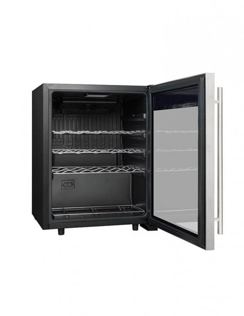 Компрессор, в качестве системы охлаждения, минимизирует вибрацию и энергопотребление, выделяясь на фоне альтернатив надежностью и долговечностью. Светодиодная подсветка активируется отдельно и предназначена для демонстрации коллекции. Класс энергопотребления — A.