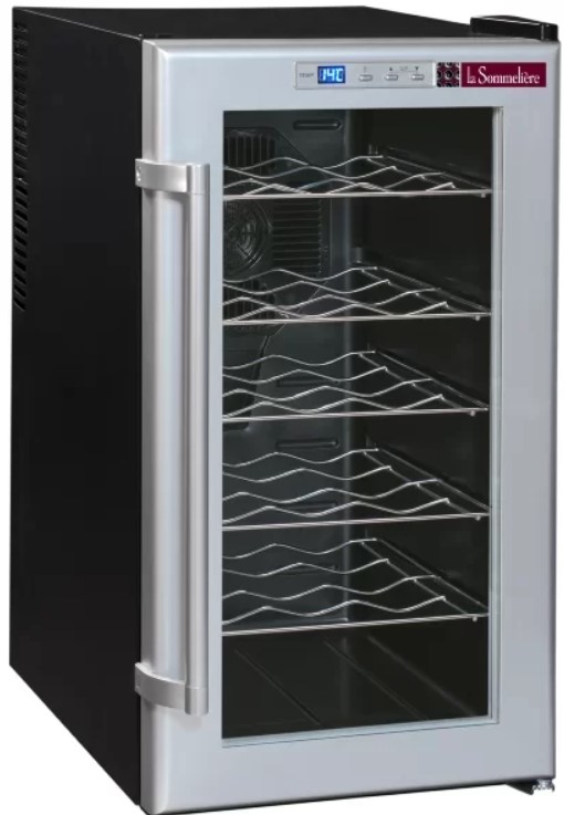 Винный шкаф La Sommeliere рассчитан на 18 бутылок стандартного объема 0,75 л. Электронное управление с цифровым дисплеем позволяет следить за вашей маленькой коллекциях и подготовить вино к подаче на стол. Стеклянная дверь дает полный обзор.