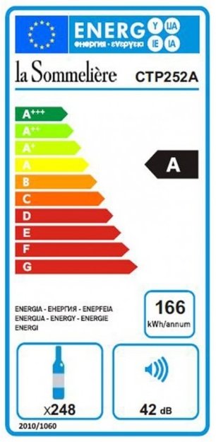 Класс энергопотребления винного шкафа — характеристика, которую необходимо учитывать, выбирая модель. Как и у обычных холодильников, у оборудования для хранения вин класс энергоэффективности обозначается буквами латинского алфавита. Каждое обозначение присваивается конкретной модели по итогам ее сравнения с некоей нормативной, усредненной моделью винного шкафа такого же класса. Значение выше 100% означает, что модель потребляет электроэнергии больше, чем стандартный винный шкаф, а менее 100% — что энергопотребление снижено по сравнению со средним.