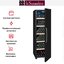 Производители предлагают винные шкафы, оснащенные одной, двумя, тремя и четырьмя камерами, которые могут располагаться как друг под другом, так бок и бок. Самые популярные — однокамерные модели, ассортимент которых особенно широк, но втором месте — двухкамерные. Над заметить, что количество камер не зависит напрямую от габаритов изделия: например, однокамерные модели увеличенных габаритов — далеко не редкость. Их высота может варьироваться в пределах от 14 см до 219 см, а ширина — от 13 см до 150 см.
