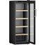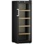 Стеклянная дверь — дополнительный изящный штрих к общему дизайну модели. Специальное покрытие защищает вино от влияния ультрафиолетовых лучей, которые проникают, если шкаф находится в солнечной комнате. Цвет корпуса — черный. Дверь можно перевесить на другую сторону, поэтому вариантов размещения его в доме становится больше.