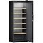 Глухая дверь без стекла надежно защищает вино от влияния ультрафиолетовых лучей, которые проникают, если шкаф находится в солнечной комнате. Это гарантирует также герметичное хранение. Цвет корпуса — черный. Дверь можно перевесить на другую сторону, поэтому вариантов размещения его в доме становится больше.