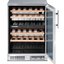 Ширина винного шкафа, как и другие их габариты, обязательно учитывается при выборе модели для домашнего или профессионального использования. Встраиваемые и отдельно стоящие модели выпускаются в самом широком ассортименте, так что разброс значений максимально велик. Неизменным спросом пользуются винные шкафы стандартной ширины — от 40 до 80 см, в современном и классическом стиле. Для встраиваемых шкафов наиболее удобной является ширина 60 см, позволяющая устанавливать их в кухонную тумбу или колонну. Вместимость их может быть самой различной и зависит в большей степени от высоты прибора. Маленькие винные шкафы с размещением на столешнице или даже с креплением к стене, рассчитанные на хранение от одной до десяти бутылок, могут иметь минимальную ширину от 13 см. На полках у них обычно помещается не более 5 бутылок, и используются они для охлаждения вина перед подачей. Большие винные шкафы с несколькими камерами и температурными зонами для длительного хранения и созревания разных сортов вина могут иметь ширину до 180 см, а максимальное значение этого параметра может составить 300 см. Как правило, это отдельно стоящие модели в деревянном корпусе с камерами side-by-side.