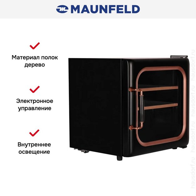 Электронное управление помогает быстро разобраться в том, как функционирует эта модель, и легко настроить все необходимые параметры. На дисплее отображаются данные, которые собирают датчики в камере. Лампочки, расположенные внутри, хорошо подсвечивают бутылки. Всего полок, на которых можно разместить коллекцию, в шкафу 2 шт. Пространство тщательно вентилируется, чтобы воздух не застаивался, не попадали посторонние запахи.