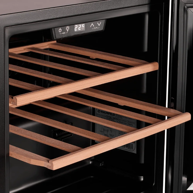 Винный холодильник Maunfeld MFWC-40SB14 имеет одну температурную зону, в которой можно разместить бутылки и единовременно выставить только одну комбинацию настроек. Он устанавливается отдельно, что удобно, если у вас есть специальное помещение — кладовая, погреб и т.д. Благодаря компактным размерам данная модель — отличный выбор для офиса, гостиничного номера. Количество бутылок, которое можно разместить с учетом полной комплектации и из расчета объема бутылки 0,75 л, — 14 шт.