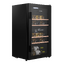 Стеклянная дверь — дополнительный изящный штрих к общему дизайну модели. Специальное покрытие защищает вино от влияния ультрафиолетовых лучей, которые проникают, если шкаф находится в солнечной комнате. Цвет корпуса — черный.