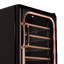 Стеклянная дверь — дополнительный изящный штрих к общему дизайну модели. Специальное покрытие защищает вино от влияния ультрафиолетовых лучей, которые проникают, если шкаф находится в солнечной комнате. Цвет корпуса — черный.