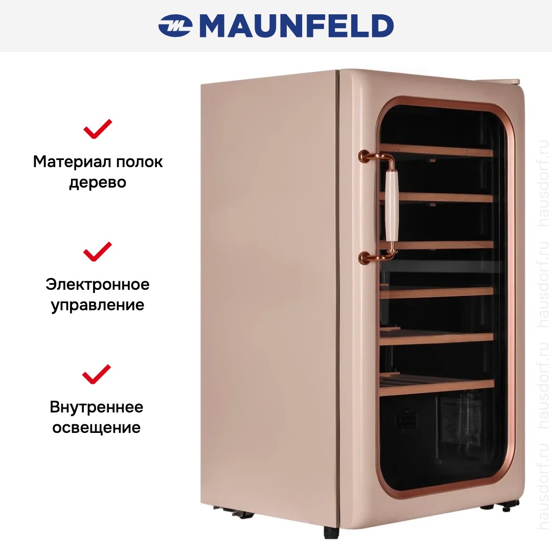 Винный холодильник Maunfeld MFWC-85SCH34 имеет одну температурную зону, в которой можно разместить бутылки и единовременно выставить только одну комбинацию настроек. Он устанавливается отдельно, что удобно, если у вас есть специальное помещение — кладовая, погреб и т.д. Благодаря компактным размерам данная модель — отличный выбор для офиса, гостиничного номера. Количество бутылок, которое можно разместить с учетом полной комплектации и из расчета объема бутылки 0,75 л, — 34 шт.