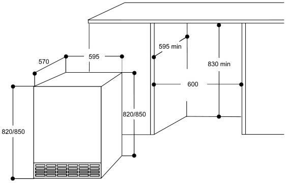 Некоторые отдельно стоящие винные шкафы, а также модели, встраиваемые в мебельную колонну, шкаф или другое закрытое пространство, оснащаются системой забора воздуха и вентиляционной решеткой, расположенными спереди в нижней части корпуса. Зазоры между корпусом шкафа и стенками мебели необходимы и в этом случае.