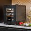 Количество камер — одна из важных характеристик, учитываемых при выборе винного шкафа. Достаточно часто покупатели не различают понятия камеры и температурной зоны в холодильнике для хранения вин. Камера в подобном шкафу ничем не отличается от камеры в обычном холодильнике: это часть внутреннего пространства, имеющая отдельную дверцу. В камере может быть выделено несколько температурных зон, условия в которых могут регулироваться раздельно. Однокамерный прибор может иметь от одной до шести зон, а в двухкамерном может располагаться от одной до четырех зон. Например, большие шкафы Dometic с компоновкой side-by-side имеют по две температурные зоны в каждой камере.