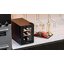 Электронное управление помогает быстро разобраться в том, как функционирует эта модель, и легко настроить все необходимые параметры. На дисплее отображаются данные, которые собирают датчики в камере. Лампочки, расположенные внутри, хорошо подсвечивают бутылки. Всего полок, на которых можно разместить коллекцию, в шкафу 2 шт.