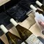 Полки в винных шкафах позволяют размещать бутылки для хранения в горизонтальном положении. Это необходимо, чтобы пробка постоянно смачивалась жидкостью и не пересыхала. Плотно закрытая пробка гарантирует, что внутрь бутылки не проникнет наружный воздух. Кислород, содержащийся в воздухе, может стать причиной ухудшения вкуса вина и даже его скисания. Кроме того, горизонтальное положение позволяет лучше оценить количество осадка. Материал изготовления полок выбирается, исходя из требований, предъявляемых к содержанию коллекции вин. Одним из основных требования является отсутствие или максимальное сокращение вибрации и хорошая фиксация бутылок на месте хранения. Даже если полка выдвигается, бутылки должны оставаться на своем месте. Второе требование исключает применение стеклянных полок, как в обычном холодильнике: на них почти невозможно зафиксировать бутылки.