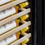 Полки в винных шкафах позволяют размещать бутылки для хранения в горизонтальном положении. Это необходимо, чтобы пробка постоянно смачивалась жидкостью и не пересыхала. Плотно закрытая пробка гарантирует, что внутрь бутылки не проникнет наружный воздух. Кислород, содержащийся в воздухе, может стать причиной ухудшения вкуса вина и даже его скисания. Кроме того, горизонтальное положение позволяет лучше оценить количество осадка. Материал изготовления полок выбирается, исходя из требований, предъявляемых к содержанию коллекции вин. Одним из основных требования является отсутствие или максимальное сокращение вибрации и хорошая фиксация бутылок на месте хранения. Даже если полка выдвигается, бутылки должны оставаться на своем месте. Второе требование исключает применение стеклянных полок, как в обычном холодильнике: на них почти невозможно зафиксировать бутылки.