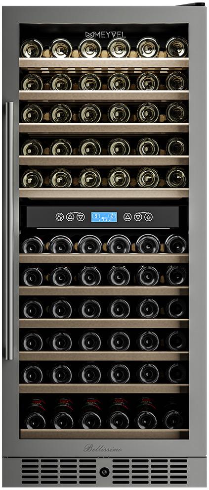 Для длительного сохранения установленных параметров в винных шкафах Meyvel используется дверца с многослойным остеклением. Такое решение позволяет удерживать холод внутри камеры вне зависимости от температуры в помещении, а также сохранить температуру при отключении электроэнергии.