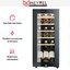 Стеклянная дверь — дополнительный изящный штрих к общему дизайну модели. Специальное покрытие защищает вино от влияния ультрафиолетовых лучей, которые проникают, если шкаф находится в солнечной комнате. Хранение становится еще безопаснее и герметичнее благодаря нескольким слоям стекол. Цвет корпуса — черный.
