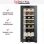 Электронное управление помогает быстро разобраться в том, как функционирует эта модель, и легко настроить все необходимые параметры. На дисплее отображаются данные, которые собирают датчики в камере. Лампочки, расположенные внутри, хорошо подсвечивают бутылки. Всего полок, на которых можно разместить коллекцию, в шкафу 5 шт.